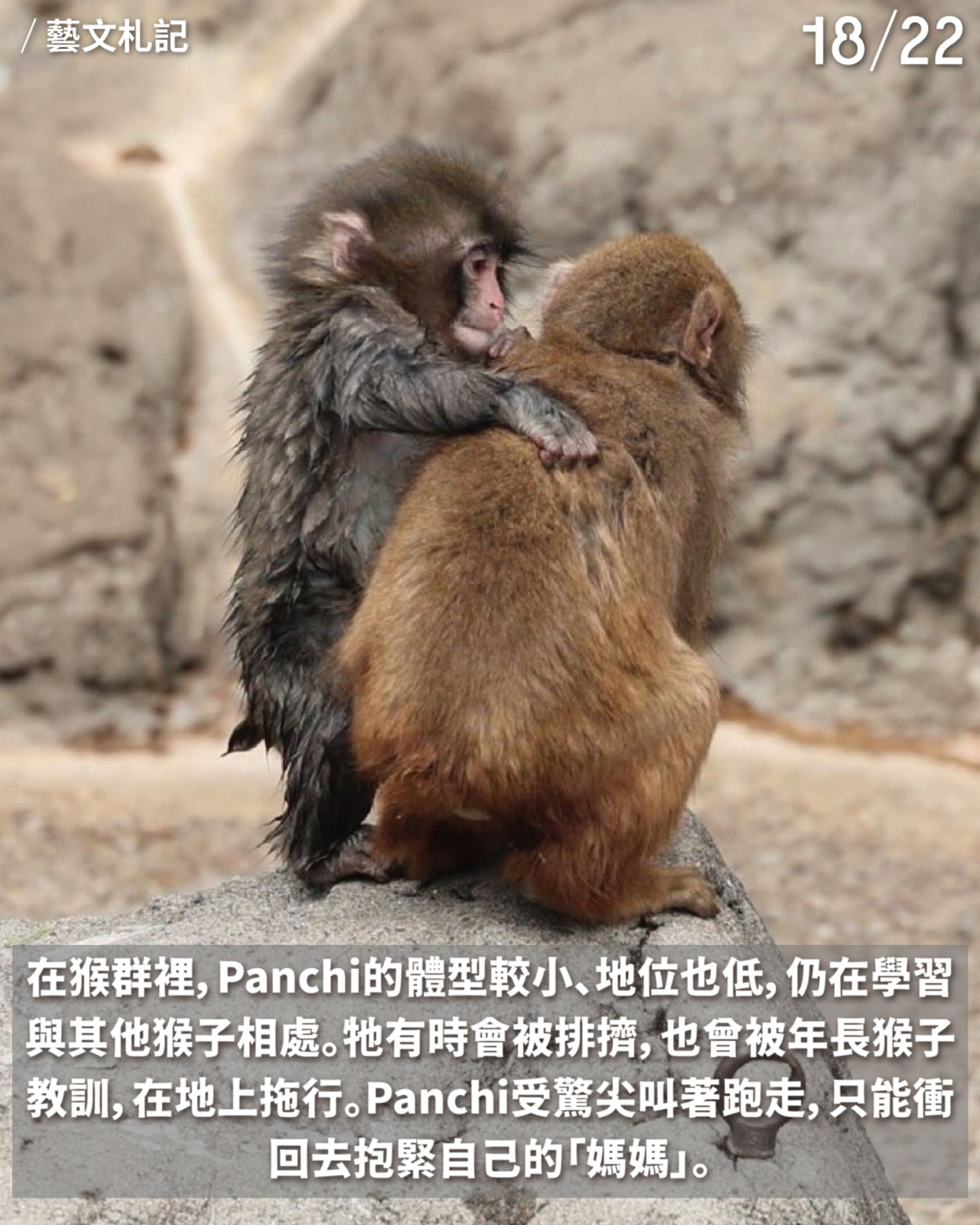 縱然一次次失敗,Panchi也沒有放棄過,一步一步學習、嘗試、適應。現在,牠終於找到願意保護自己的猴子朋友了。讓我們繼續為Panchi打氣,也學像Panchi一樣,好好面對生命裡的難關吧!